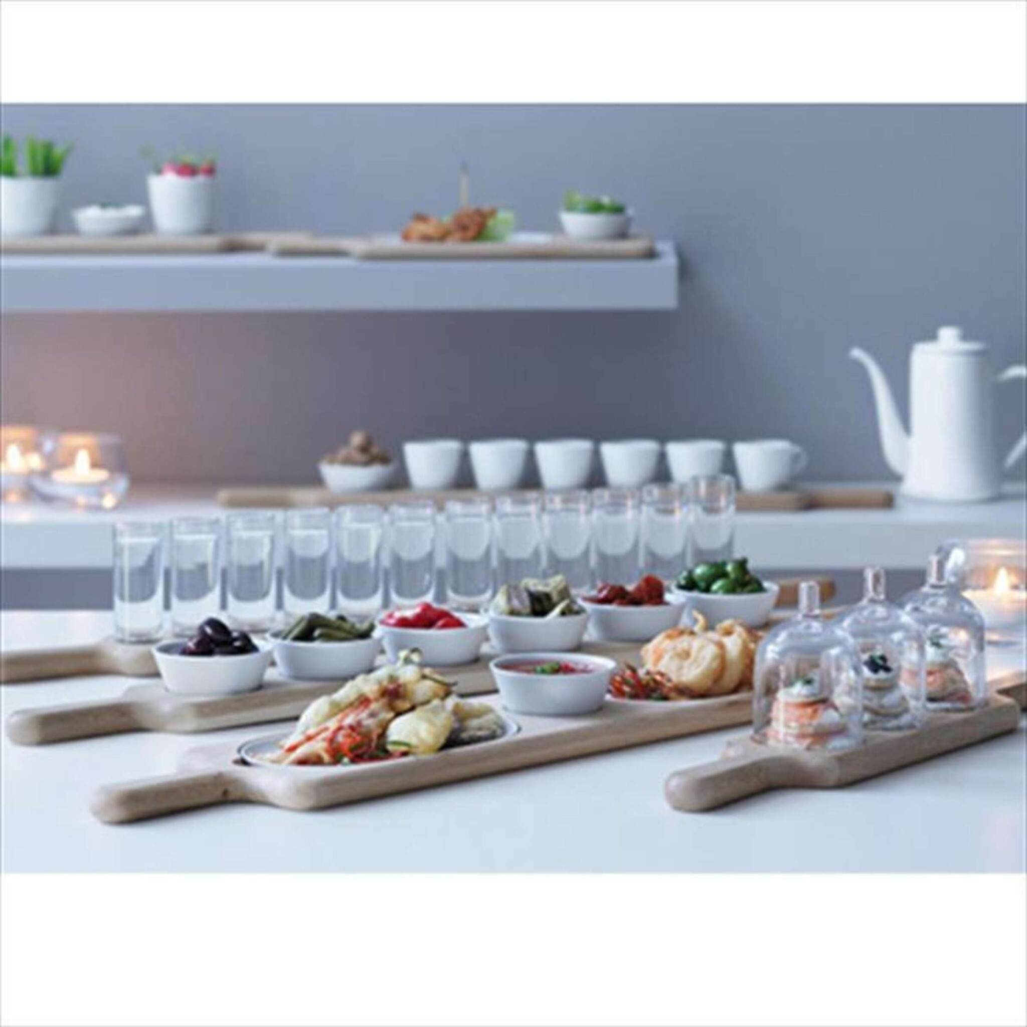Entworfen nach den Ideen der Tiroler Berghütten. Servieren von Schnaps in kleinen Schnapsgläsern, die auf Eichentabletts präsentiert werden. Auf diese Weise konnte der Schnaps von Mann zu Mann weitergegeben werden. Diese Idee brachte die Engländerin Monika Lobkowska-Jonas dazu, eine ganze Serie für das gemütliche Beisammensein mit Freunden zu entwerfen, die vom Servieren von Getränken bis hin zu leckerem französischen Käse reicht. Das Porzellan und das Glas werden auf einem schönen Bett aus Eichenholzplatten serviert. Für aufsehenerregende und originelle Serviermöglichkeiten. Das verwendete Eichenholz ist zu 100 % FSC-zertifiziert. Dieses Set von L.S.A. aus der Paddle-Serie besteht aus 12 Wodkagläsern und einem schönen Serviertablett aus Holz. Mit diesem Set macht das Trinken noch mehr Spaß!